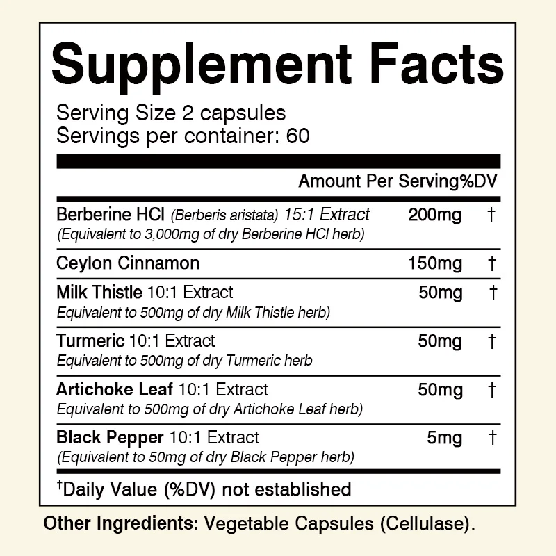 PREMIUM INGREDIENTS - Our Capsule Formula 4700 mg: Includes Berberine, Ceylon Cinnamon, Milk Thistle, Turmeric, Artichoke Leaf, Black Pepper, known for promoting heart health, healthy liver function, and rich in antioxidants.