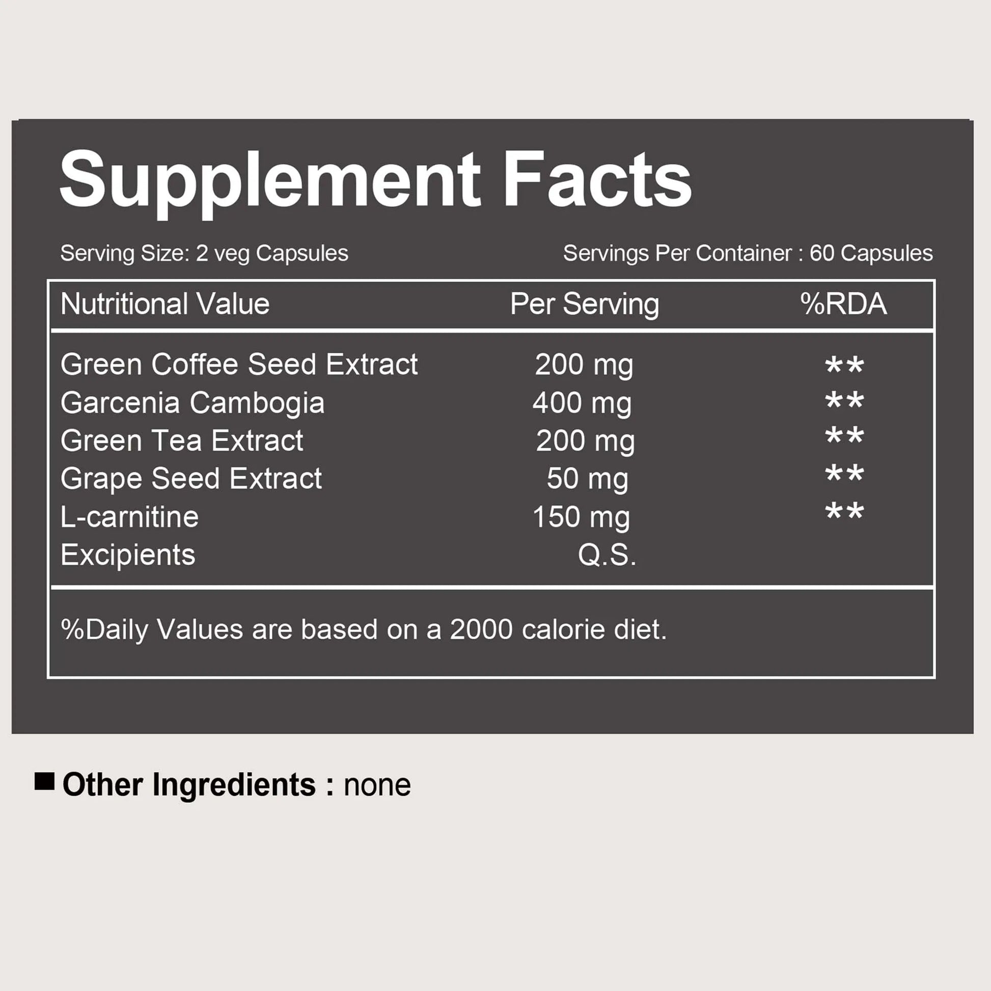 Ingredients: Garcenia Cambogia, Green Tea Extract